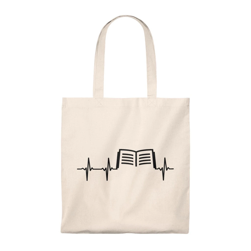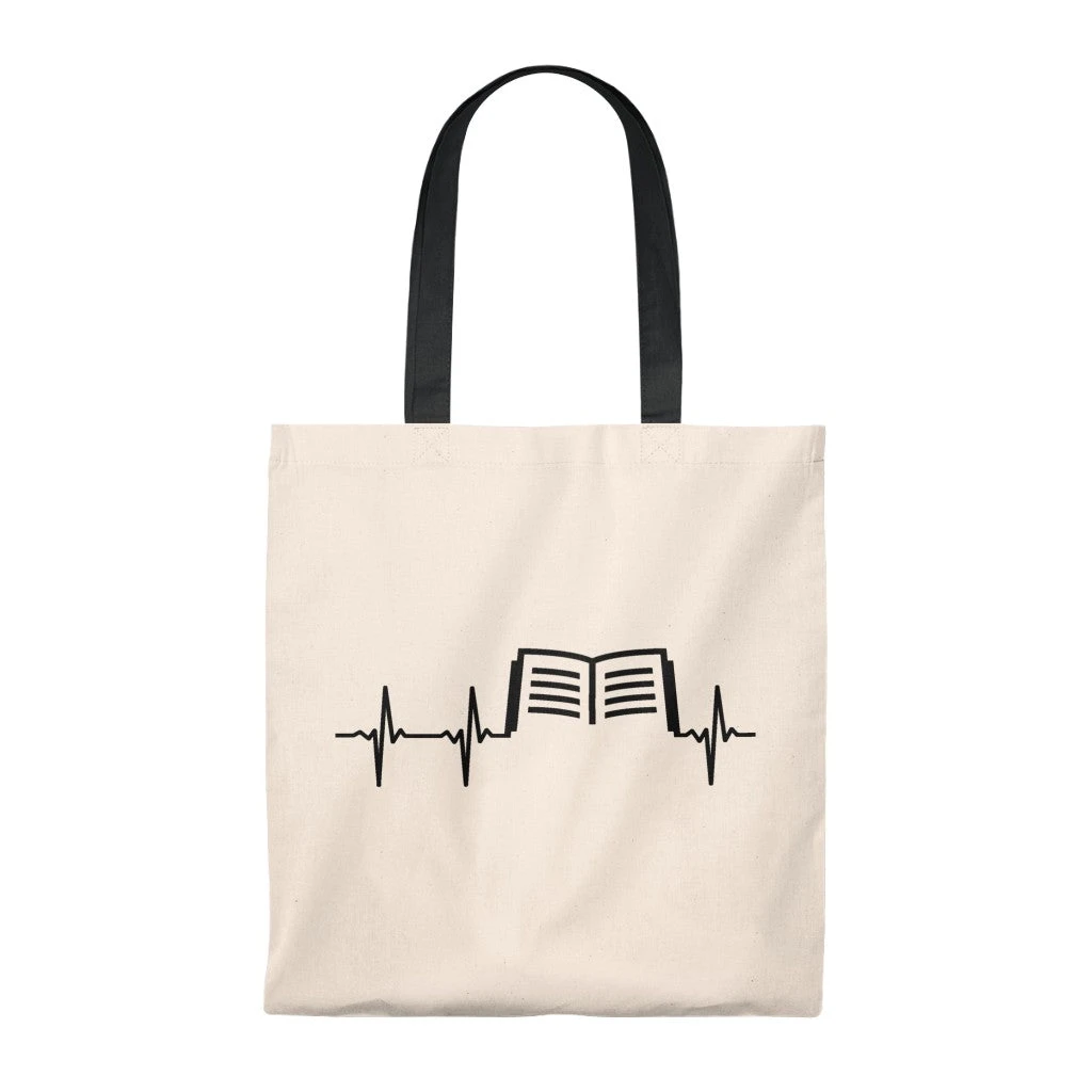 Book Heartbeat Canvas Tote Bag – Vintage Style
