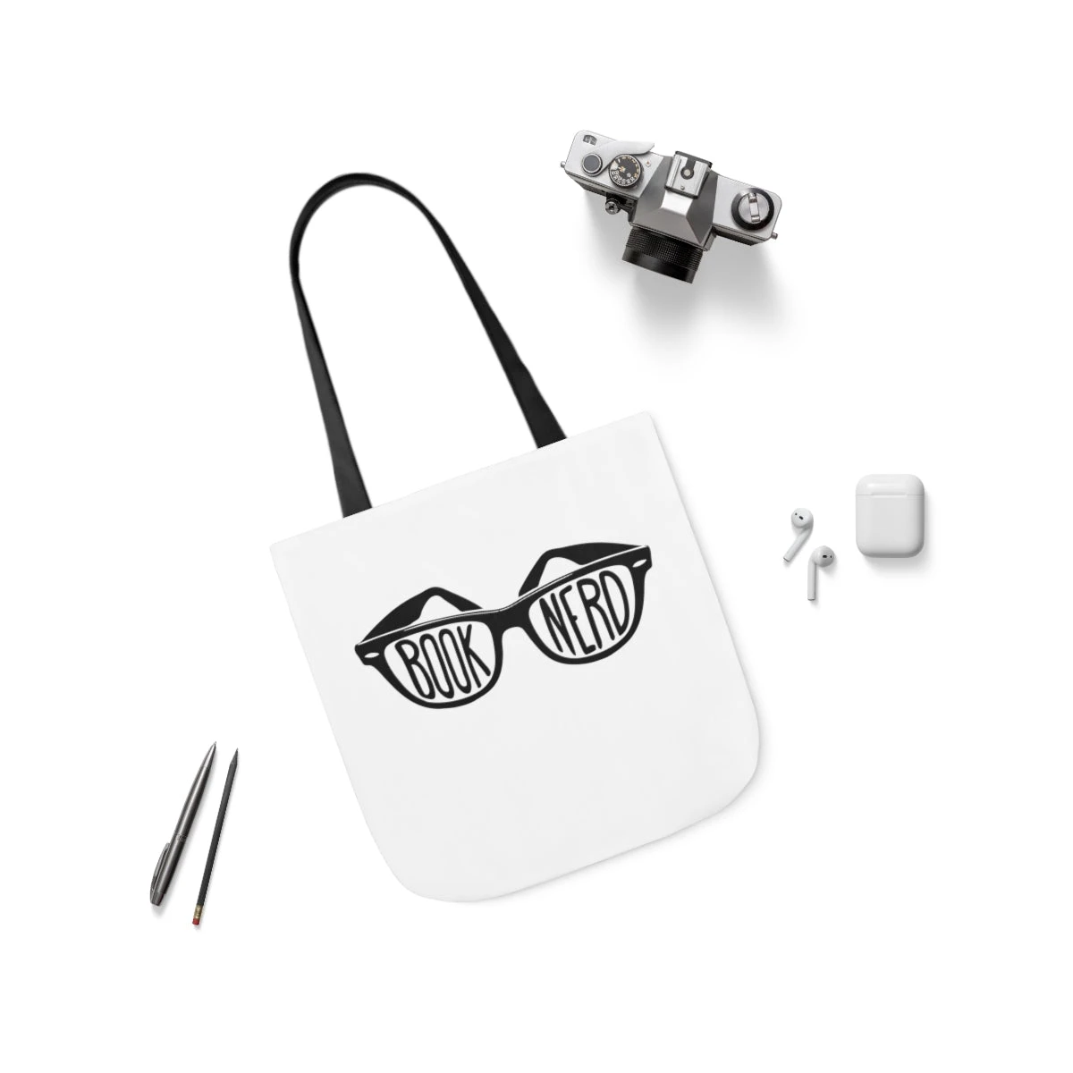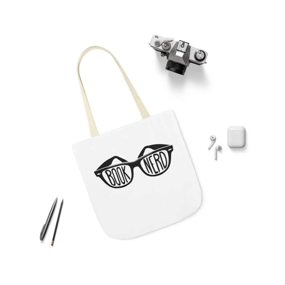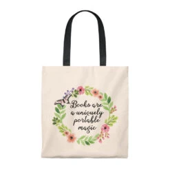 This highly practical carryall bookish Tote Bag is an ideal canvas for any book lover. Different color handles provide comfort with style on the beach or out in town.