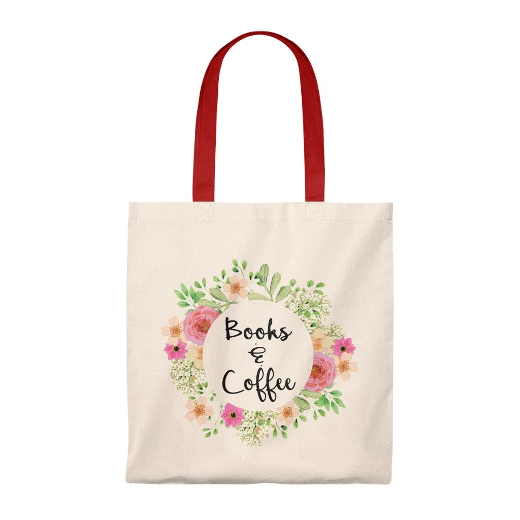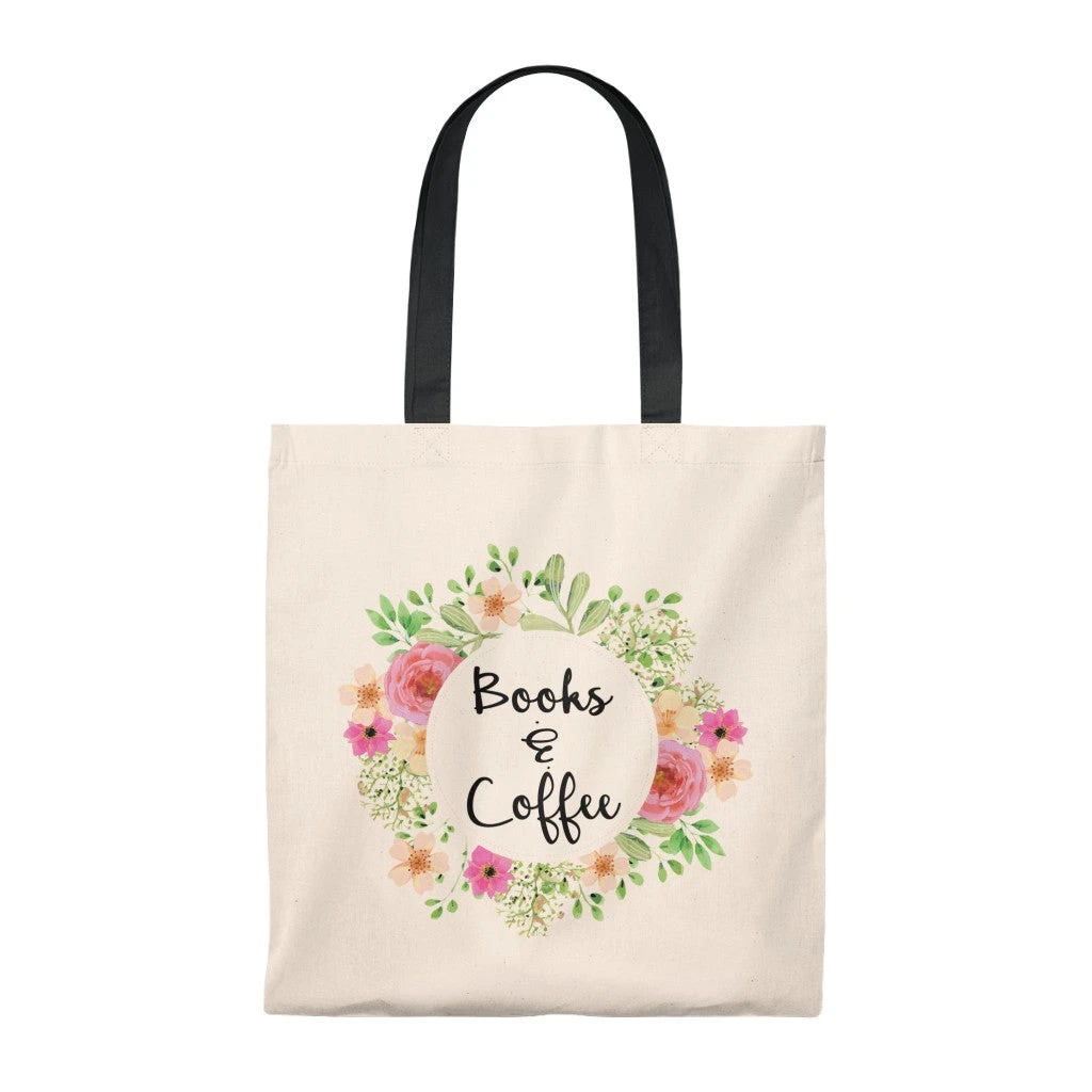 Books & Coffee Floral Canvas Tote Bag – Vintage Style