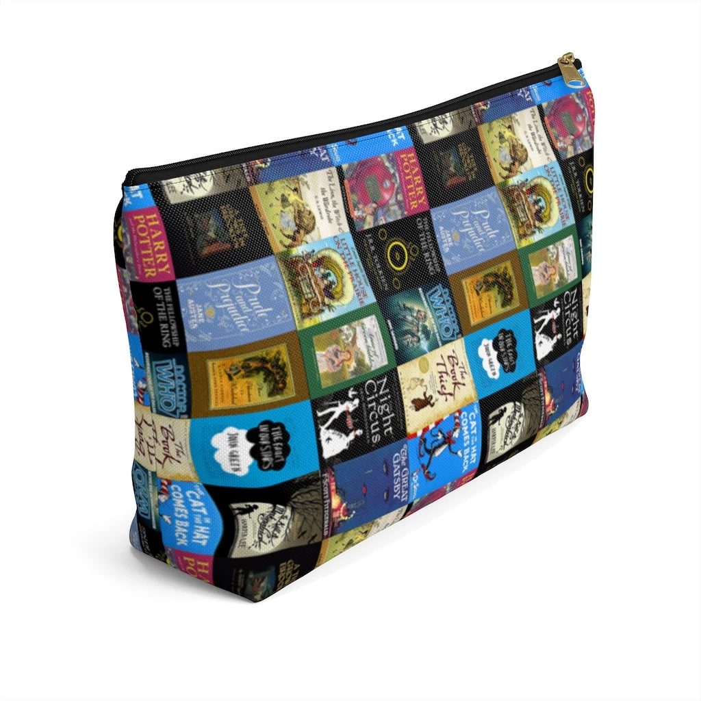 Our bookish t-bottom pouches vary from small to large and can be used for pretty much anything. They make excellent pencil cases and cosmetic travel bags. They are constructed of a durable material with a zipper closure.