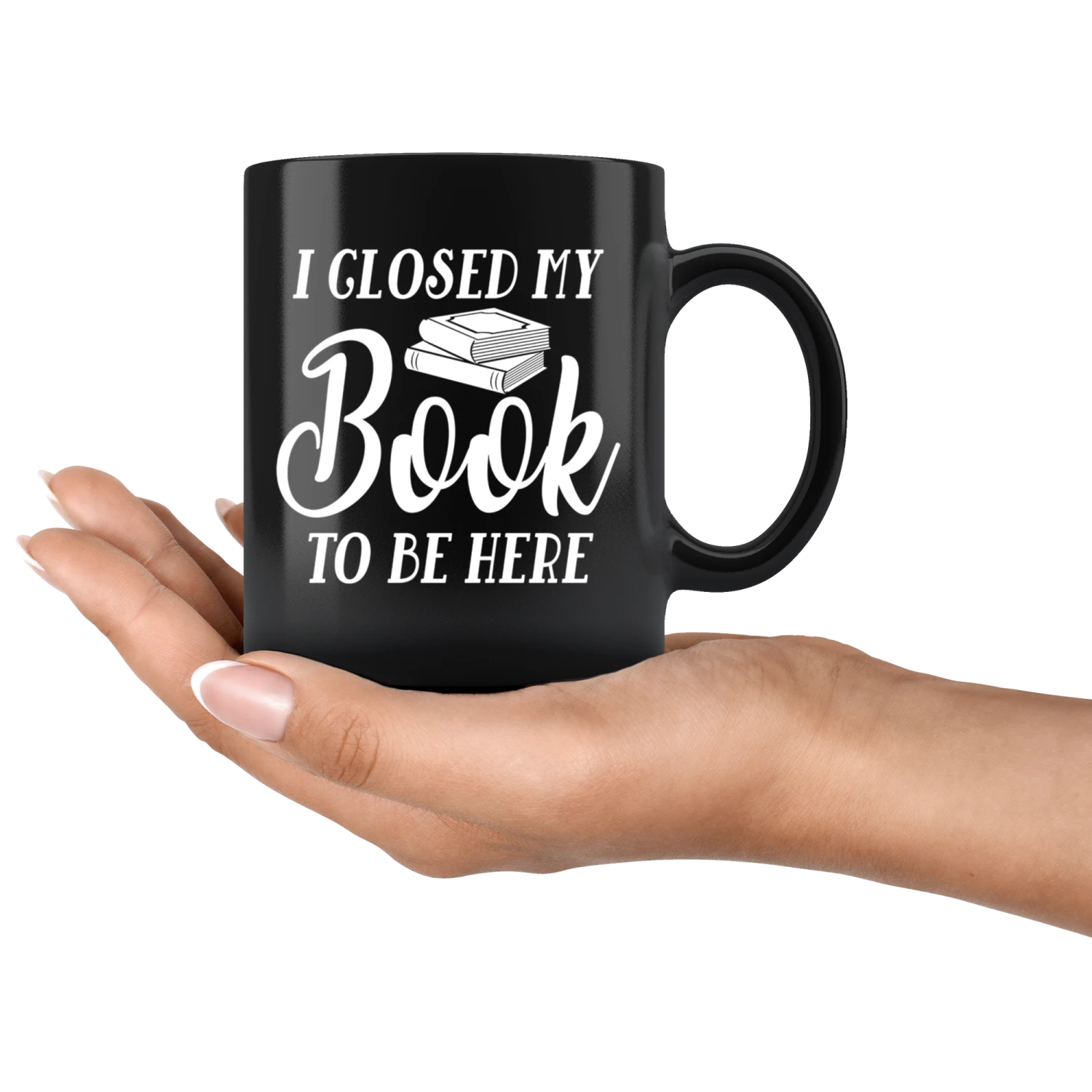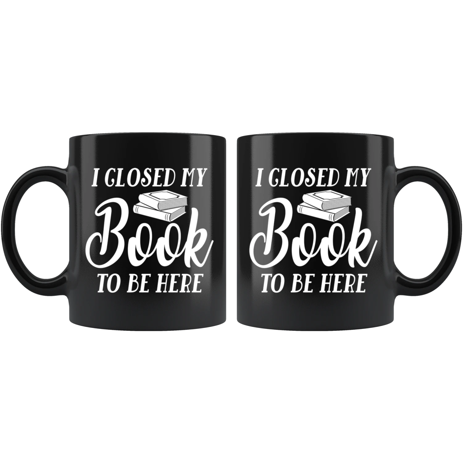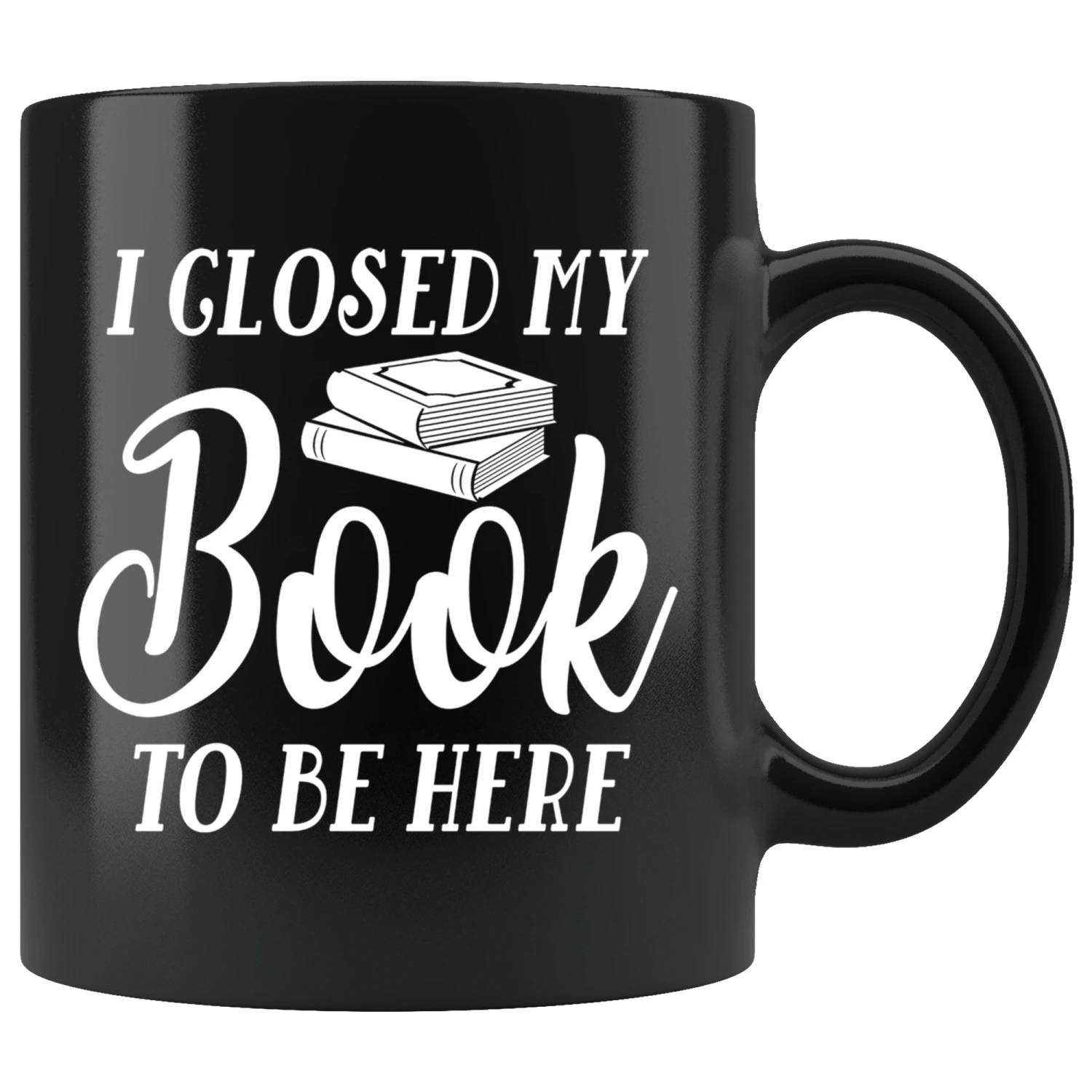“I Closed My Book To Be Here”11oz Black Mug