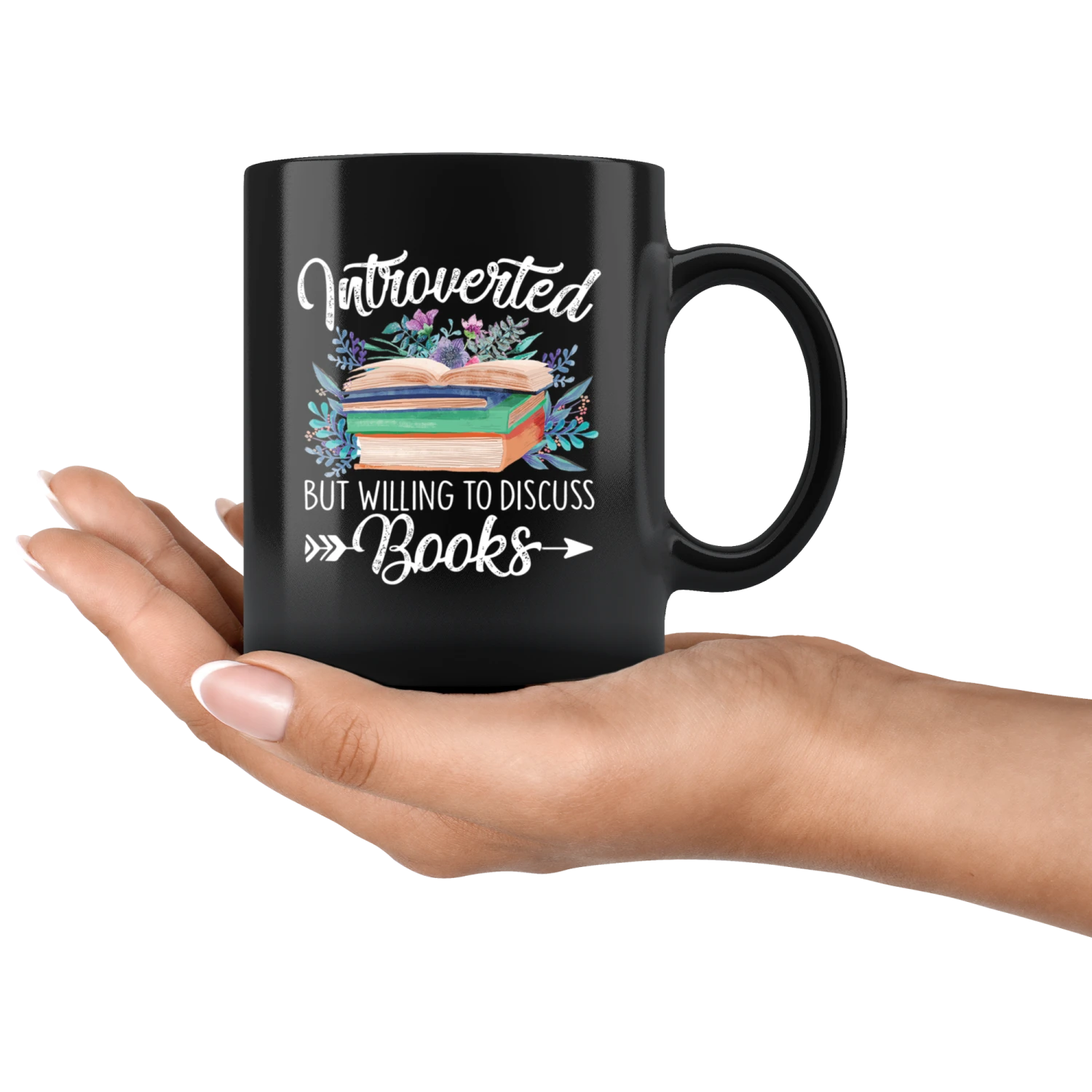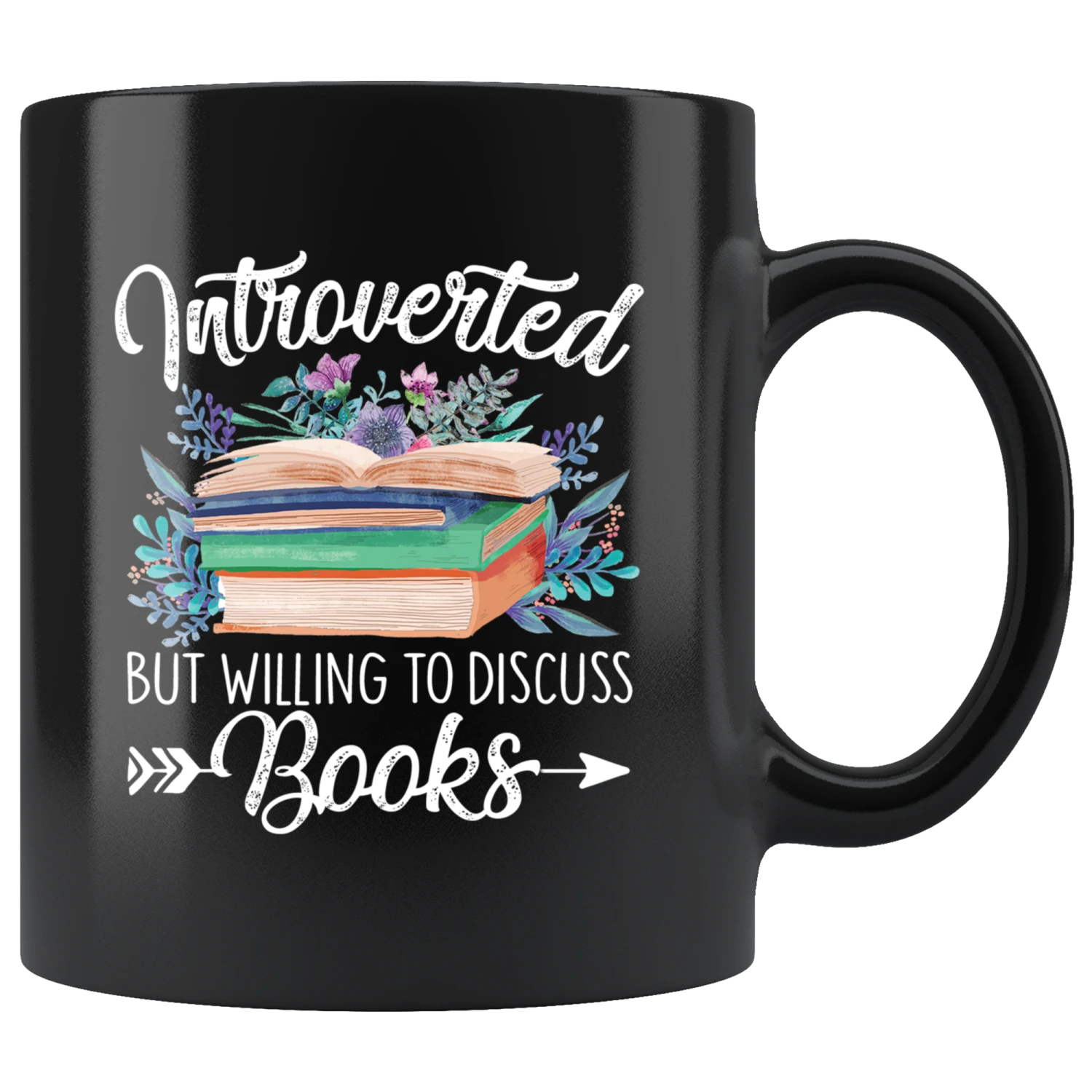 “Introverted But Willing To Discuss Books”11oz Black Mug