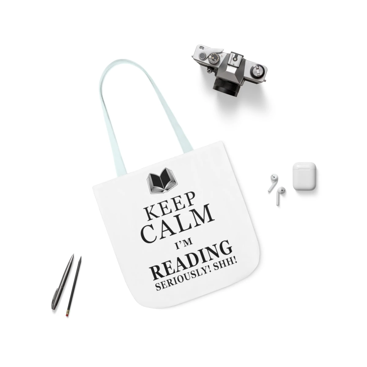 This highly practical carryall bookish Tote Bag is an ideal canvas for any book lover. Different color handles provide comfort with style on the beach or out in town.