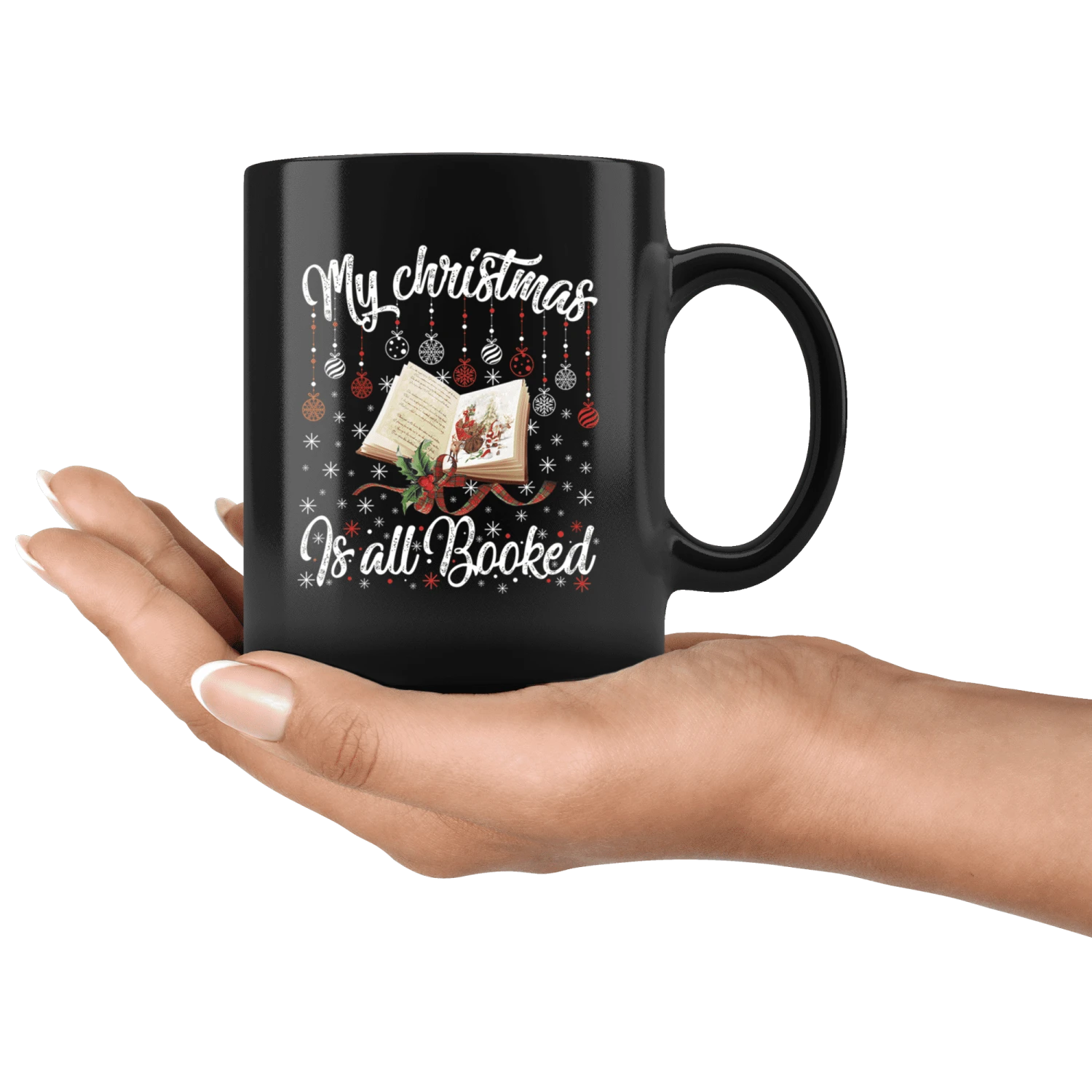 “My Christmas Is All Booked”11oz Black Christmas Mug