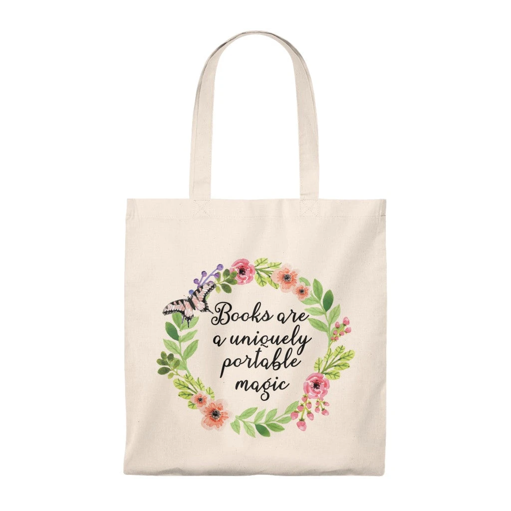 This highly practical carryall bookish Tote Bag is an ideal canvas for any book lover. Different color handles provide comfort with style on the beach or out in town.