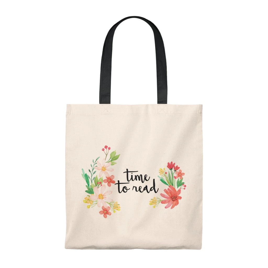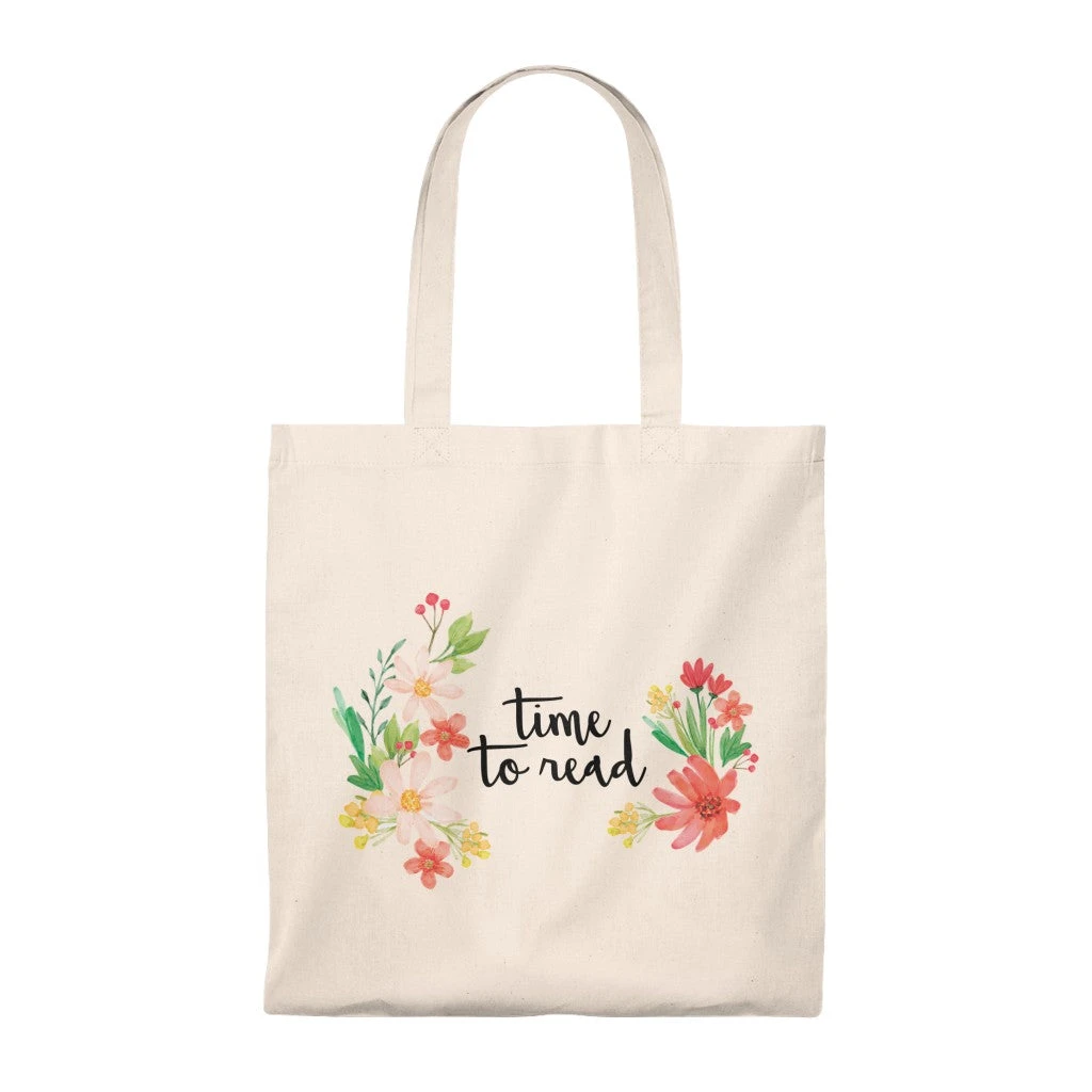 Time To Read Floral Canvas Tote Bag – Vintage Style